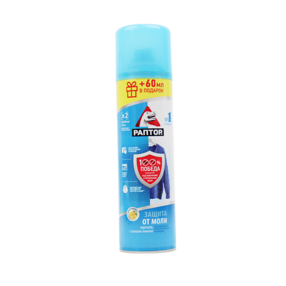 Забудьте о проблеме с молью с помощью аэрозоля Raptor! Этот мощный спрей обеспечивает надежную защиту от моли в вашем доме. Просто распылите его в шкафы, ящики или другие места, где моль может появиться, и забудьте о ней. Аэрозоль Raptor отлично подходит для использования в гардеробе, кладовой или даже на балконе. Не дайте моли испортить вашу одежду или другие ценные вещи - действуйте прямо сейчас и защитите их с помощью аэрозоля Raptor!
