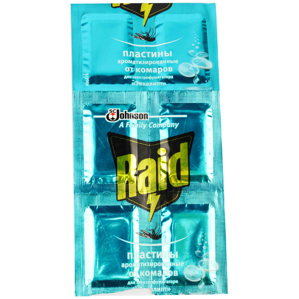 Пластины Raid предназначены для использования с фумигаторами для защиты от комаров. Эти пластины содержат в себе активное вещество — эвкалипт, которое эффективно отпугивает комаров, обеспечивая защиту в помещении.