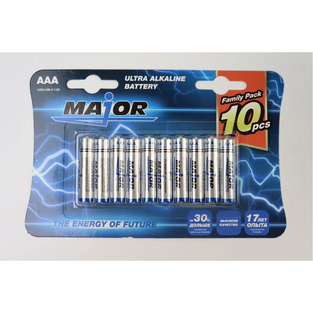 Major Ultra Alkaline Batteries - надежный и мощный источник энергии для вашей электроники. Упаковка из 10 штук батареек типа Aaa обеспечит вас долгим сроком службы и стабильным питанием для различных устройств. Используйте их для пульта дистанционного управления, фонарика, игрушек и других устройств, где требуется надежная и долговечная батарея. Не беспокойтесь о перерывах в работе вашей техники - Major Ultra Alkaline Batteries всегда под рукой, чтобы обеспечить вас энергией. Попробуйте их сегодня и ощутите разницу в качестве питания!