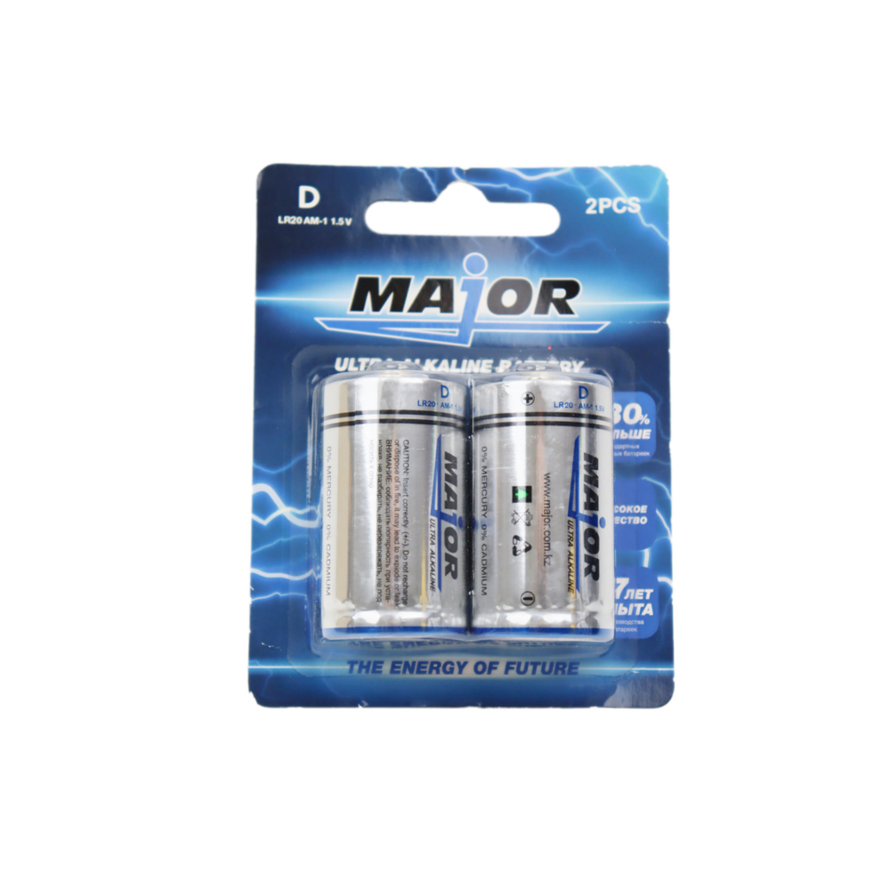 Major Ultra Alkaline Battery LR20 AM-1 D 2pcs - надежные батарейки для вашей электроники. Эти батарейки обеспечат длительную работу ваших устройств, будь то пульты дистанционного управления, фонарики или игрушки. Не беспокойтесь о замене батареек каждую неделю - Major Ultra Alkaline Battery LR20 AM-1 D 2pcs гарантируют долговечность и надежность. Попробуйте их сегодня и ощутите разницу!