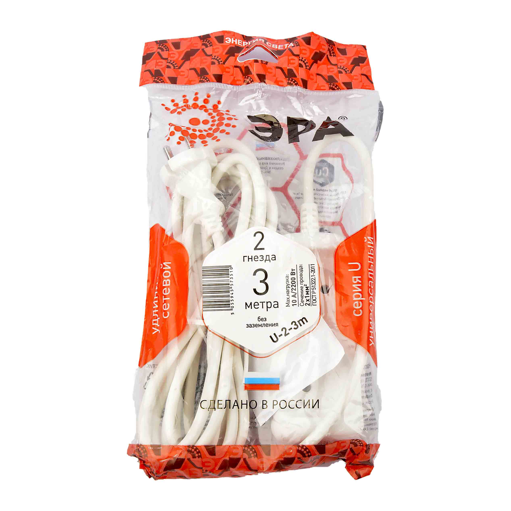 Удлинитель Era UX 2 с длиной кабеля 3 метра, без заземления, имеет два гнезда. Сечение проводов составляет 2x0,75 мм². Этот удлинитель предназначен для подключения электроприборов и обеспечения дополнительной длины провода для удобства использования в домашних условиях или на рабочем месте.