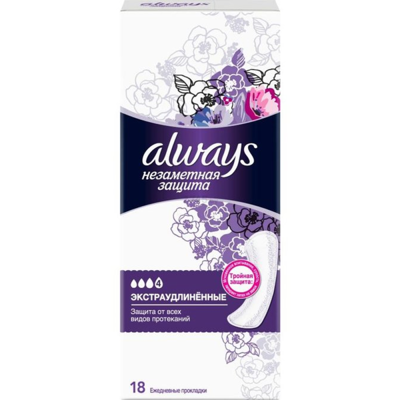 Прокладки гигиенические Always ежедневные незаметные защита экстраудлинные 18 штук - идеальное решение для комфортной и незаметной защиты в течение всего дня. Эти прокладки обеспечивают надежную защиту и комфорт благодаря своей ультратонкой конструкции. Идеально подходят для ежедневного использования или в качестве дополнительной защиты во время менструации. Попробуйте их сегодня и почувствуйте уверенность и комфорт в любой ситуации!