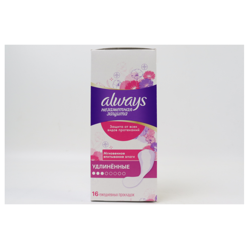 Прокладки гигиенические Always ежедневные незаметные защиты удлиненные 16 штук - идеальное решение для комфортной и незаметной защиты в течение всего дня. Эти прокладки обеспечивают надежную защиту и комфорт благодаря удлиненному размеру и специальной форме. Идеально подходят для активного образа жизни и обеспечивают ощущение свежести и сухости. Попробуйте использовать их в сочетании с трусиками или трусами для максимального комфорта и защиты. Не откладывайте заботу о своем комфорте на потом - попробуйте прокладки Always уже сегодня!