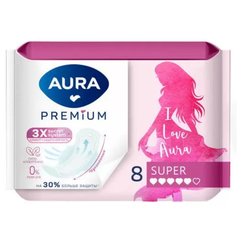 Женские гигиенические прокладки Aura Premium Super обеспечат вам надежную защиту и комфорт в течение всего дня. Супер-абсорбирующий слой поможет избежать протеканий, а мягкая поверхность не раздражает кожу. Идеально подходят для активного образа жизни и путешествий. Попробуйте использовать их в сочетании с трусиками или при занятиях спортом. Не откладывайте заботу о своем комфорте на потом - приобретите прокладки Aura Premium Super прямо сейчас!
