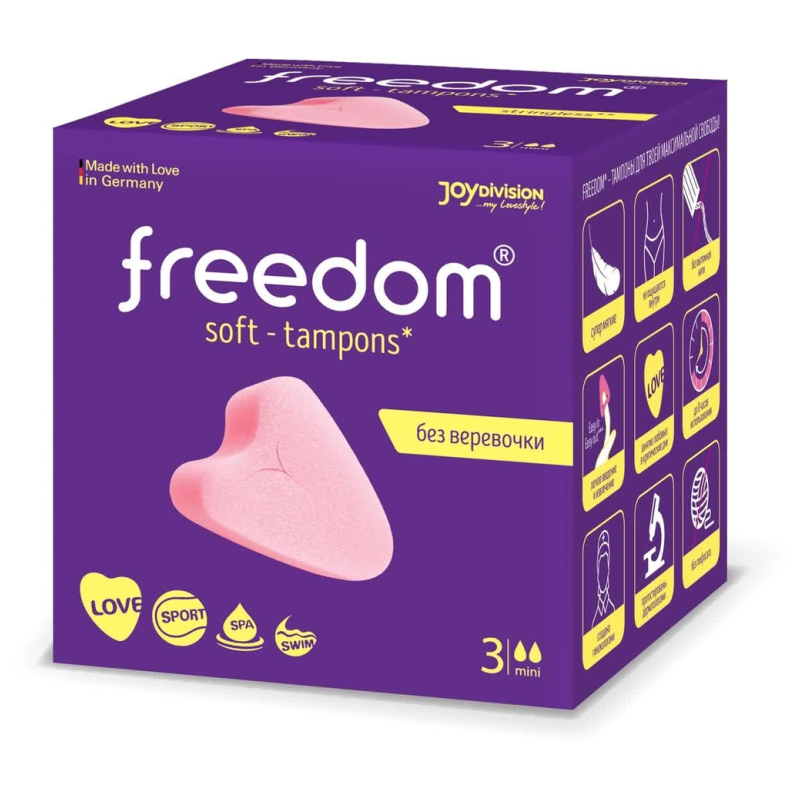 Тампоны Freedom® - средства гигиены для современных женщин, которые не хотят отказывать себе ни в чем даже в «эти дни» . Менструация - явление обыденное и привычное для всех представительниц прекрасного пола, но зачастую женщине приходится отказываться от многих удовольствий во время этого периода: секс, активные занятия спортом, плавание в бассейне, отдых на пляже. Тампоны Freedom® обеспечивают не только надежную защиту от выделений в критические дни, но и дают возможность не отказываться от св