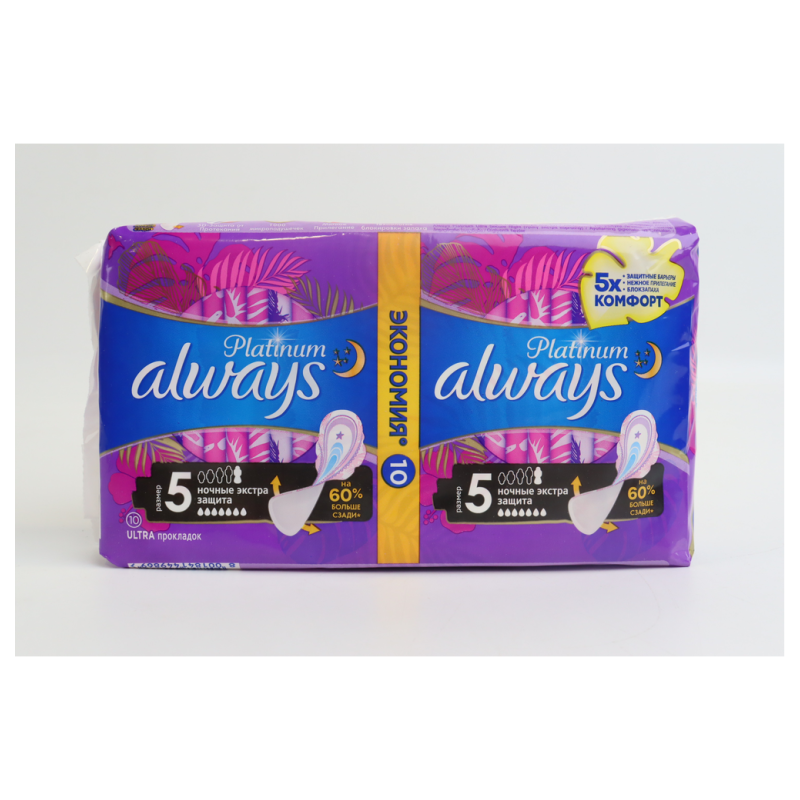 Прокладки Always Ultra Platinum Duo - ночные экстра защита 10 штук. Надежная защита на ночь для комфортного сна. Идеально подходят для использования во время месячных. Обеспечивают длительное ощущение сухости и свежести благодаря специальной технологии. Позволяют чувствовать себя уверенно в любой ситуации. Попробуйте и оцените удобство и надежность прокладок Always Ultra Platinum Duo уже сегодня!