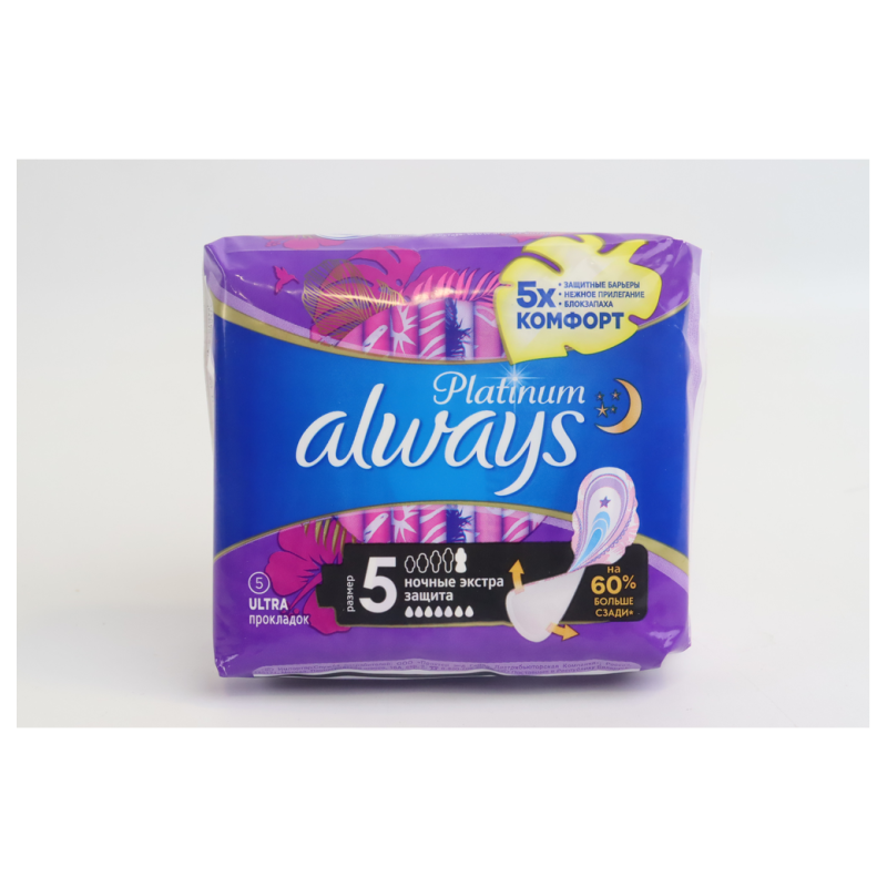 Прокладки Always Ultra Platinum - надежная защита на ночь. Экстра тонкий дизайн обеспечивает комфорт и уверенность во время сна. Суперабсорбирующий материал предотвращает протекания и обеспечивает сухость на протяжении всей ночи. Идеально подходят для активного образа жизни. Попробуйте и оцените удобство и надежность прокладок Always Ultra Platinum!