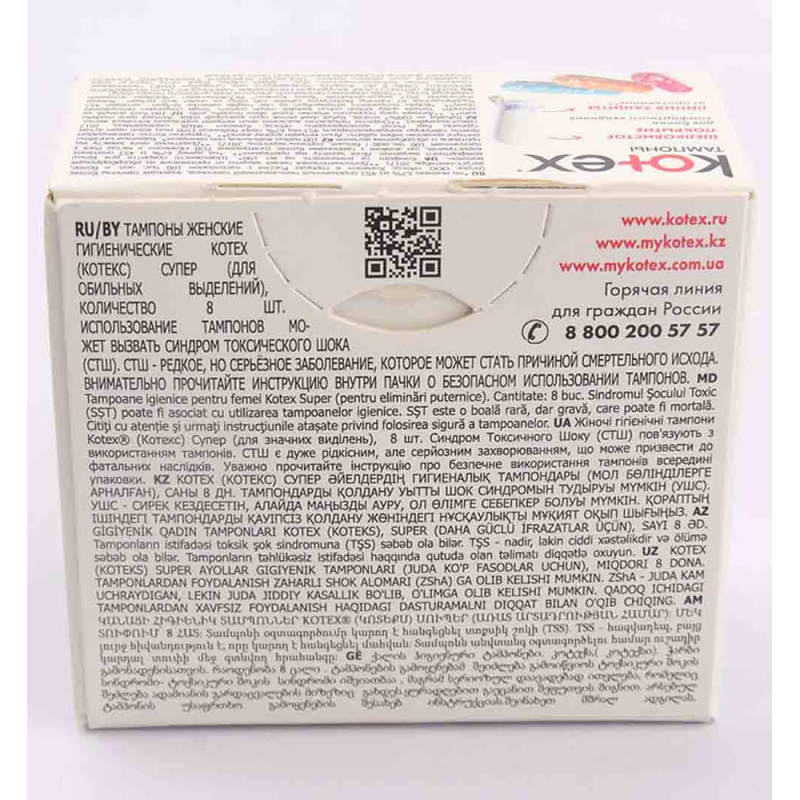 Kotex Super Tampons - надежная защита на каждый день! Эти тампоны обеспечат вам комфорт и уверенность в любой ситуации. Супер-абсорбирующий материал поможет избежать протечек, а удобная форма обеспечит идеальную посадку. Идеально подходят для активного образа жизни. Попробуйте и оцените удобство и надежность Kotex Super Tampons уже сегодня!