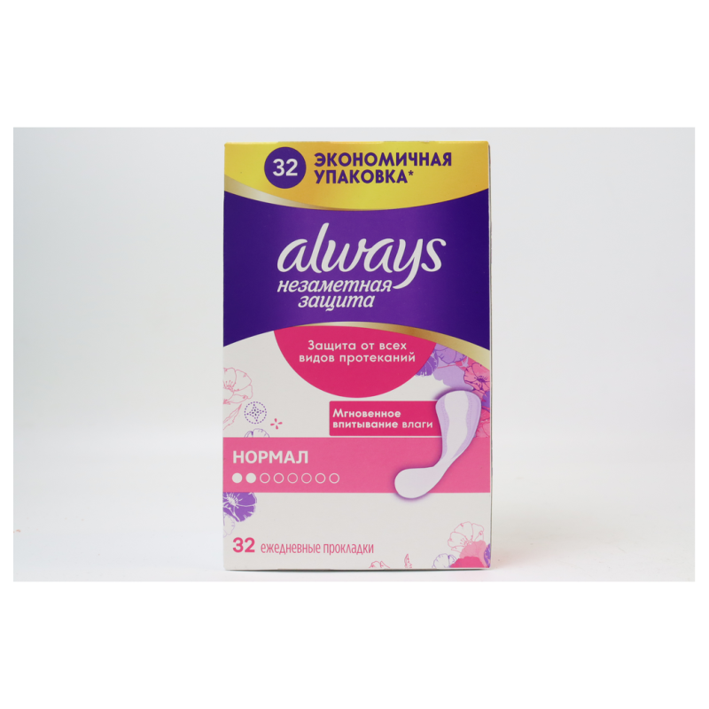 Прокладки гигиенические Always ежедневные незаметные защиты удлиненные нормальные 32 шт. Обеспечьте себе комфорт и уверенность на протяжении всего дня с прокладками Always. Их удлиненный размер и невидимость под одеждой делают их идеальным выбором для активного образа жизни. Используйте прокладки Always для ежедневной защиты и комфорта. Они подходят для любого типа белья и обеспечивают надежную защиту от протеканий. Попробуйте использовать прокладки Always в сочетании с трусиками или стрингами для максимального комфорта и защиты. Не откладывайте заботу о своем здоровье на потом - действуйте прямо сейчас и обеспечьте себе надежную защиту с прокладками Always.