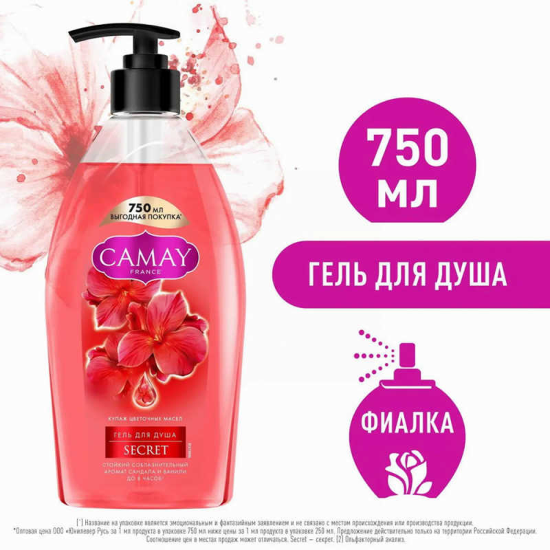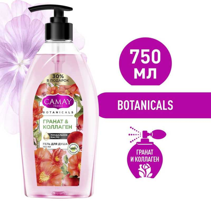 Нежный гель для душа «Цветы граната» от Camay погружает вас в ароматный мир восточных цветов и фруктов. Его увлажняющая формула бережно очищает кожу, оставляя ее мягкой и шелковистой. Попробуйте использовать его не только для умывания, но и как ароматный пенный бальзам для волос. Почувствуйте себя настоящей королевой в ванной комнате с гелем для душа «Цветы граната» от Camay!