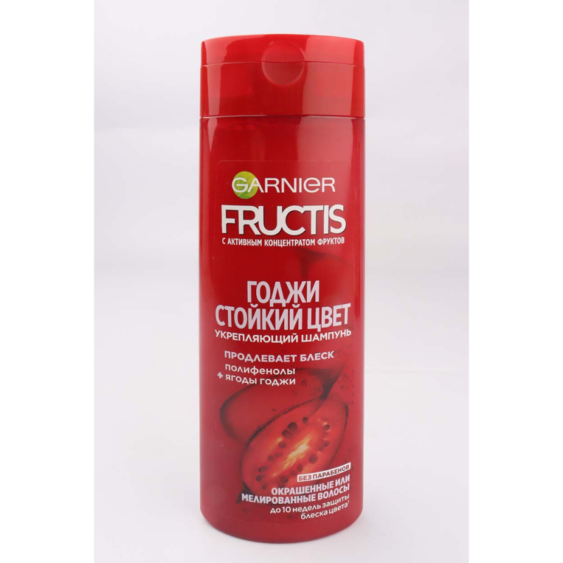 Шампунь Garnier Fructis «Годжи» с технологией стойкого цвета предназначен для окрашенных волос. Его уникальная формула с экстрактом годжи помогает зафиксировать цвет волос и предотвратить его вымывание, сохраняя яркость и насыщенность даже после многократного мытья. Объем флакона составляет 250 мл, что обеспечивает достаточное количество продукта для регулярного использования. Получите защиту цвета и стойкость яркости с шампунем Garnier Fructis «Годжи» .