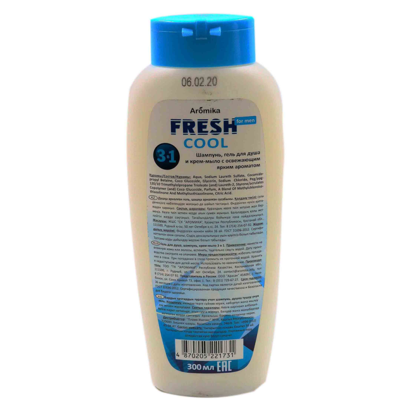 Освежающий шампунь Fresh Cool для мужчин - это идеальное решение для ухода за волосами, лица и телом в одной упаковке. Специально разработанная формула обеспечивает глубокое очищение волос, увлажнение кожи и приятное ощущение свежести на протяжении всего дня. Прост в использовании и экономичен в расходе. Попробуйте использовать шампунь Fresh Cool не только для волос, но и как гель для душа или средство для бритья. Ощутите прилив энергии и уверенность в себе с каждым применением! Действуйте сейчас и добавьте этот универсальный продукт в свою ежедневную рутину ухода.