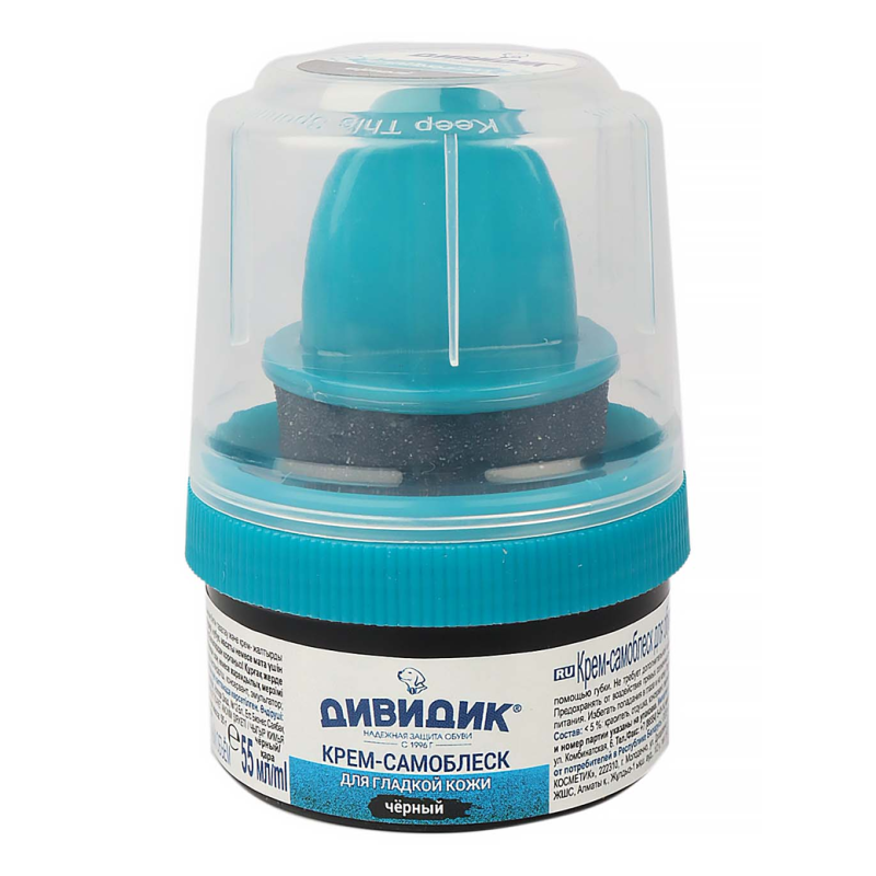 Крем для обуви «Самоблеск» в пластиковой банке, с насадкой для нанесения, предназначен для черной обуви. Его объем составляет 55 мл Этот крем отличается особой формулой, которая придает обуви блеск и защищает ее от влаги и загрязнений, сохраняя при этом ее цвет и качество. Простое и удобное применение делает этот крем отличным выбором для ухода за вашей обувью.