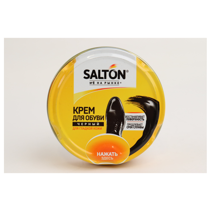 Крем для обуви Salton из гладкой кожи, черного цвета, представлен в банке объемом 50 мл Этот крем разработан специально для ухода за гладкой кожей обуви, обеспечивая ей защиту, питание и сохранение ее первоначального вида. Он помогает предотвратить потерю цвета и блеска, а также защищает кожу от влаги и загрязнений, продлевая срок службы обуви.