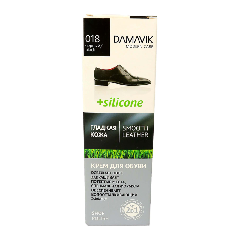 Крем для обуви Damavik с силиконом, представленный в черном цвете, упакован в тубу объемом 75 мл Этот крем обеспечивает надежную защиту и уход за обувью, придавая ей блеск и сохраняя качество материала. Благодаря силиконовой формуле обувь становится более устойчивой к влаге и загрязнениям, а черный цвет крема идеально подходит для обуви этого цвета, подчеркивая ее стиль и элегантность.