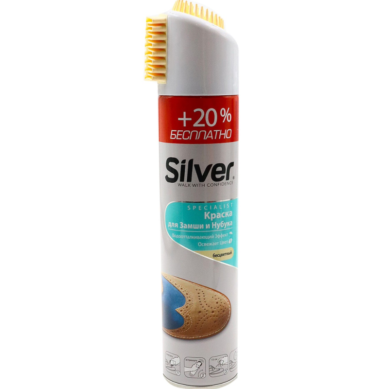 Спрей Silver - краска, восстанавливающая и защищающая нубук и замшу. 3 в 1: восстанавливает цвет, придает блеск и защищает от повреждений. Бесцветный. #carefood #нубук #замша