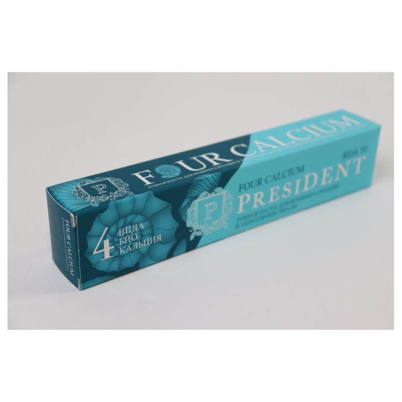 Зубная паста President Four Calcium - идеальное решение для здоровья вашей улыбки! Содержит четыре виды кальция, которые укрепляют зубную эмаль и предотвращают появление кариеса. Благодаря освежающему мятному вкусу, у вас всегда будет свежее дыхание. Используйте эту зубную пасту два раза в день для максимальной защиты зубов и десен. Попробуйте совместить с зубной щеткой President для идеальной чистоты и здоровья полости рта.
