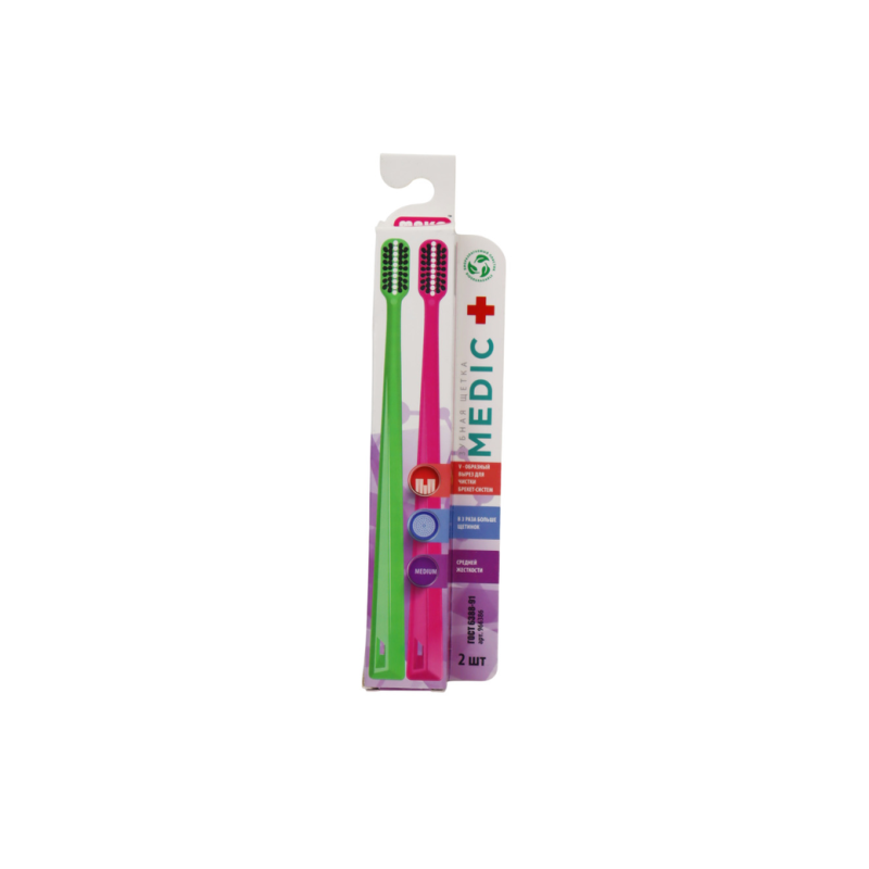 Зубная щетка Medic для брекетов - идеальное решение для тех, кто носит брекеты и хочет поддерживать здоровье своих зубов. Средняя жесткость щетинок обеспечивает бережное очищение зубов и брекетов, не повреждая их. Яркий зеленый и розовый цвета делают этот набор из 2 штук стильным и модным аксессуаром в ванной комнате. Используйте щетку Medic для брекетов утром и вечером, чтобы поддерживать свежесть дыхания и здоровье полости рта. Попробуйте использовать ее с зубной пастой для брекетов для максимального эффекта. Позаботьтесь о своих зубах с зубной щеткой Medic и наслаждайтесь здоровой улыбкой каждый день!
