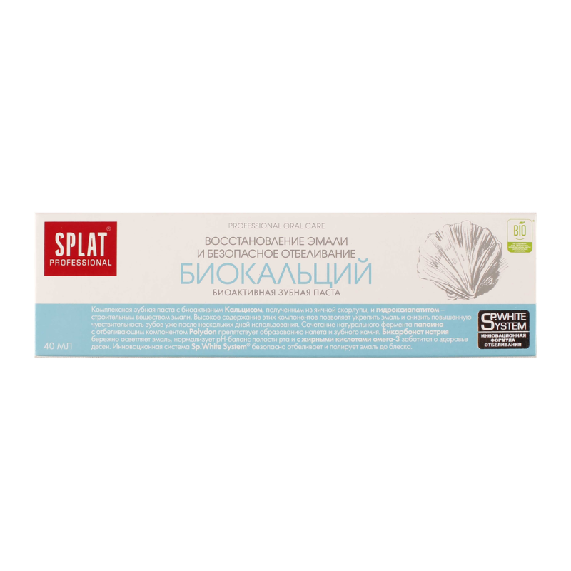Зубная паста Splat Professional с биокальцием - это идеальное решение для здоровья вашей улыбки. Ее уникальная формула обогащена биокальцием, который помогает укрепить зубную эмаль и предотвратить появление кариеса. Эта паста не только эффективно очищает зубы от налета и освежает дыхание, но и обеспечивает длительную защиту от бактерий и кариеса. Используйте зубную пасту Splat Professional каждый день для поддержания здоровья зубов и десен. А если вы хотите добавить немного разнообразия в свой уход за полостью рта, попробуйте использовать ее вместе с электрической зубной щеткой для максимального эффекта. Не упустите возможность позаботиться о своем улыбке - приобретите зубную пасту Splat Professional прямо сейчас!