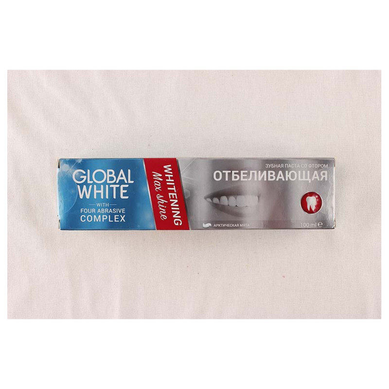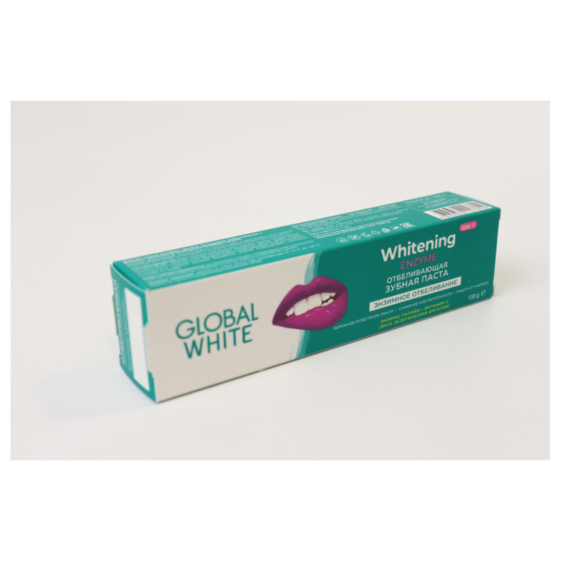 Откройте для себя секрет идеальной улыбки с зубной пастой Global White! Этот продукт обеспечивает эффективное отбеливание зубов благодаря уникальной формуле с ферментами. Вы почувствуете разницу уже после нескольких применений. Помимо отбеливающего эффекта, зубная паста Global White также защищает зубы от кариеса и освежает дыхание. Попробуйте использовать ее утром и вечером для максимального результата. Не упустите возможность улучшить свою улыбку прямо сейчас - добавьте зубную пасту Global White в корзину и наслаждайтесь результатом!
