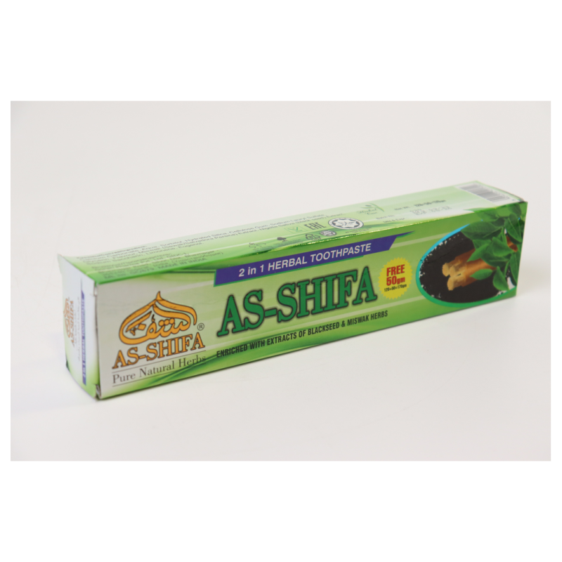 Зубная паста As-Shifa 2 в 1 с черным тмином и мисваком - идеальное решение для ежедневного ухода за зубами. Ее уникальная формула сочетает в себе свежесть мисвака и ценные свойства черного тмина, обеспечивая комплексный уход и защиту от кариеса. Паста эффективно очищает зубы от налета и освежает дыхание, придавая им здоровый блеск. Этот продукт подойдет как для утреннего, так и для вечернего ухода за полостью рта. Просто нанесите небольшое количество пасты на зубную щетку и тщательно чистите зубы в течение 2-3 минут. Регулярное использование зубной пасты As-Shifa поможет вам сохранить здоровье зубов и десен на долгие годы. Не упустите возможность попробовать этот уникальный продукт прямо сейчас - добавьте его в корзину и ощутите разницу сами!