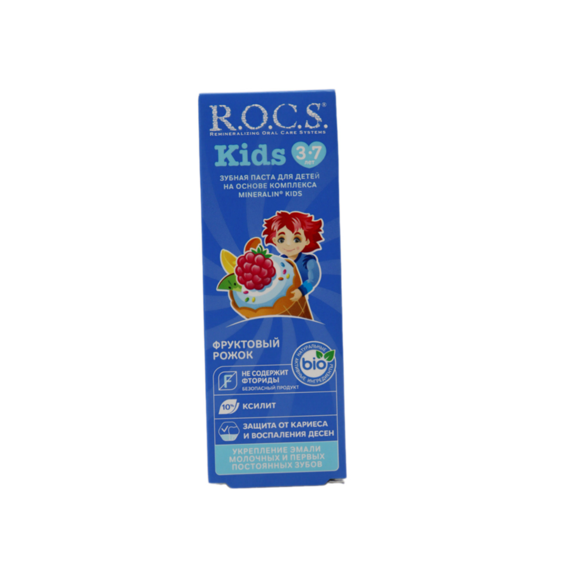 Паста зубная R. O. C. S. для детей «Фруктовый рожок без фтора» объемом 45 г амм представляет собой зубную пасту, специально разработанную для маленьких детей. Она не содержит фтора, что делает ее безопасной для проглатывания. Паста имеет приятный фруктовый вкус, который понравится детям, и обеспечивает бережный уход за зубами.