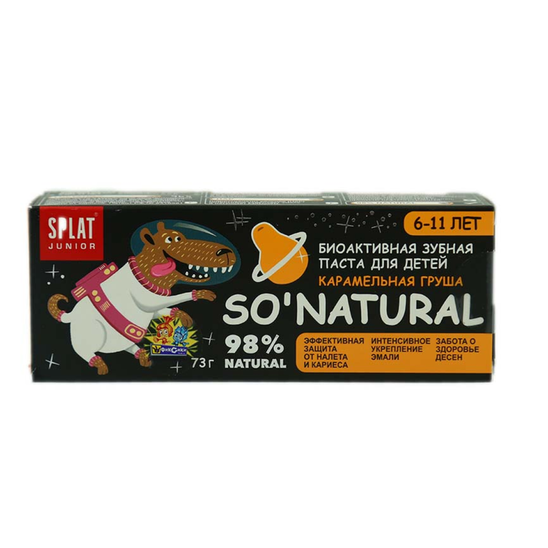 Зубная паста Splat для детей в возрасте от 6 до 11 л ет с вкусом «Карамель Груша» и объемом 55 миллилитров разработана специально для бережного ухода за зубами детей. Ее состав включает активный кальций и ксилитол, которые помогают укрепить зубную эмаль и предотвратить кариес. Приятный вкус делает чистку зубов приятной для детей.