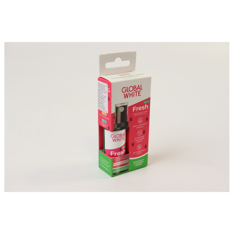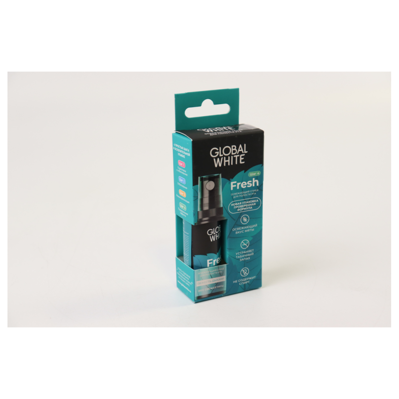 Освежите свой день с помощью спрея Global White для полости рта! Этот компактный спрей легко помещается в сумочку или карман, чтобы вы могли наслаждаться свежестью в любое время. Специально разработанная формула обеспечивает длительное ощущение чистоты и свежести. Просто распылите несколько раз в полость рта и наслаждайтесь свежим дыханием в течение дня. Идеально для использования после еды, во время путешествий или перед важным событием. Попробуйте совместить со своим любимым жевательным мятным леденцом для максимального эффекта! Не упустите возможность попробовать спрей Global White прямо сейчас!