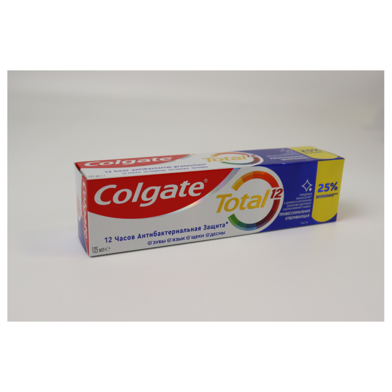 Откройте для себя новую улучшенную зубную пасту Colgate Total 12Professional Отбеливающая! Этот продукт обеспечивает полную защиту от кариеса, зубного налета и проблем с деснами. Благодаря специальной формуле с активным отбеливающим компонентом, ваша улыбка станет ярче и белее уже после нескольких применений. Используйте эту зубную пасту утром и вечером для максимального эффекта. Попробуйте совместить с использованием электрической зубной щетки для идеальной чистоты и свежести. Не упустите возможность улучшить свою улыбку - добавьте зубную пасту Colgate Total 12Professional Отбеливающая в свою ежедневную рутину ухода за зубами прямо сейчас!