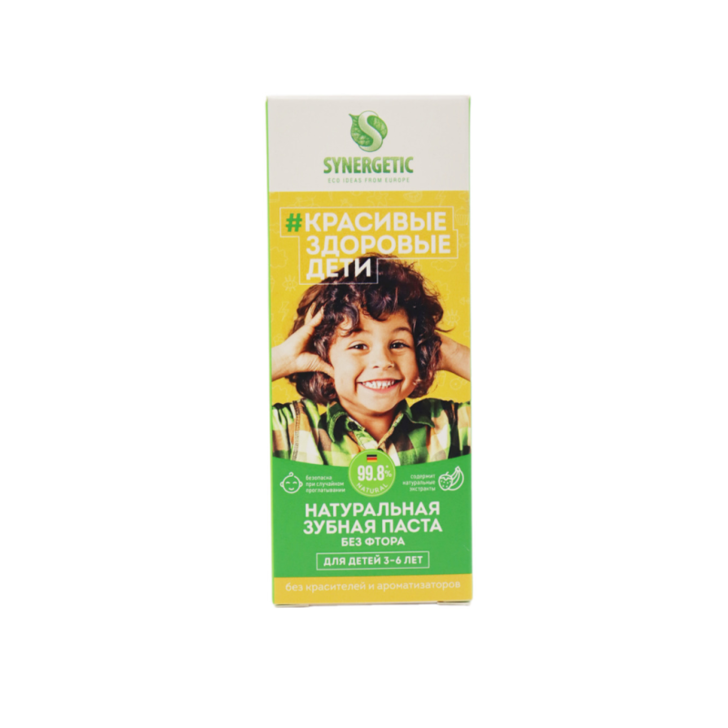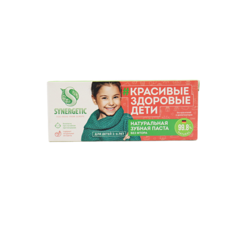 Synergetic Детская зубная паста Клубника+банан (жёлтая). Для детей от 3-х до 6-ти лет. Без фтора. Bio