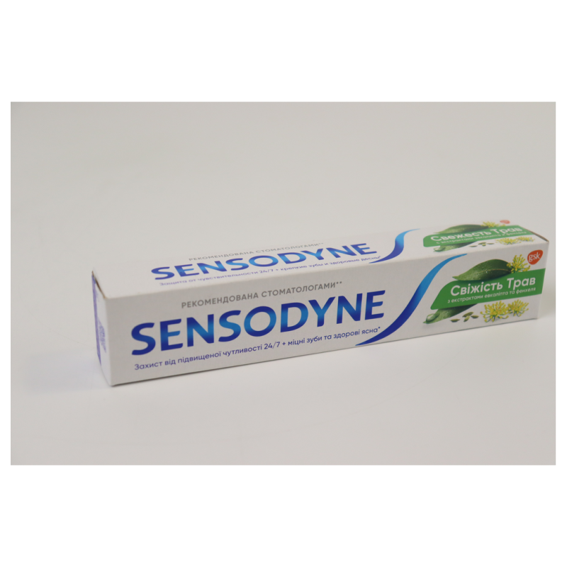 Зубная паста Sensodyne с экстрактом трав - идеальное решение для чувствительных зубов. Ее уникальная формула помогает снизить чувствительность зубов, предотвращает образование зубного налета и освежает дыхание. Экстракт трав придает особый аромат и ощущение свежести после каждого использования. Эта зубная паста подходит для ежедневного использования и поможет вам сохранить здоровье зубов и десен. Вы можете использовать ее утром и вечером для максимальной защиты и ухода за полостью рта. Попробуйте зубную пасту Sensodyne с экстрактом трав уже сегодня и почувствуйте разницу с первого же применения!