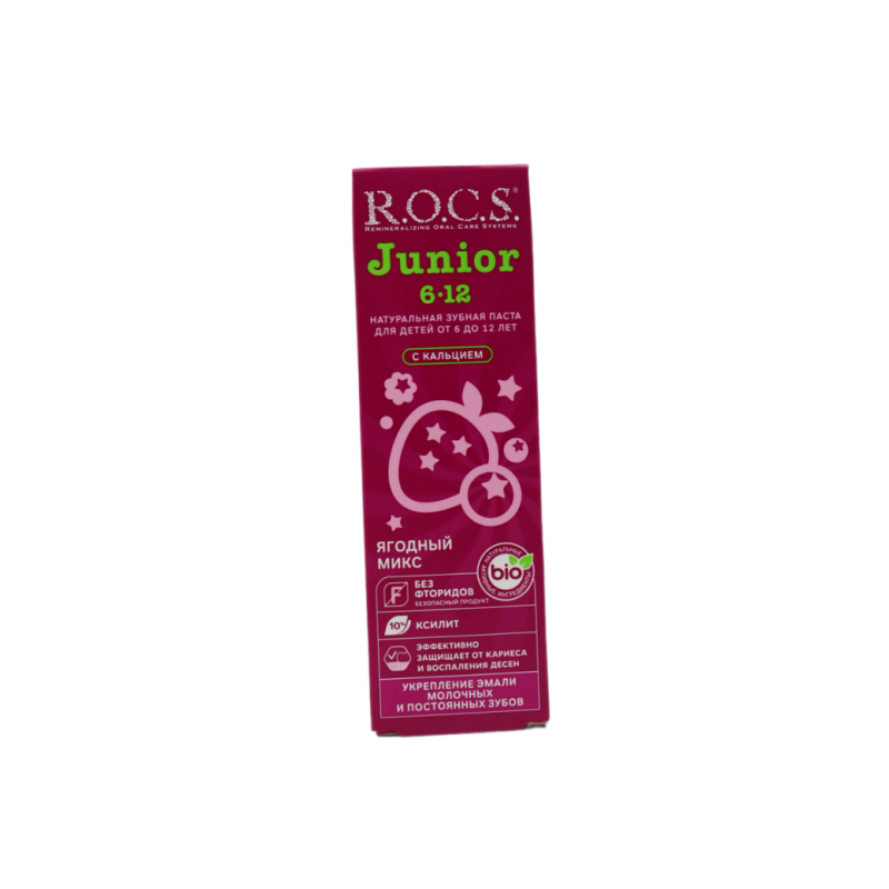 Зубная паста Rocs Junior с вкусом «Ягодный Микс» и объемом 74 г амма подходит для подростков. Она содержит ксилитол и кальций, которые помогают укрепить зубную эмаль и обеспечивают надежную защиту от кариеса. Вкусная паста делает чистку зубов приятной и эффективной.