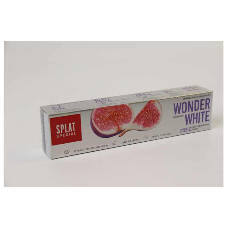 Паста для зубов Splat Special Wonder White - это идеальное решение для тех, кто мечтает о белоснежной улыбке. Специальная формула пасты помогает бороться с пигментацией и желтизной зубов, делая улыбку ярче и привлекательнее. Благодаря активным компонентам, паста эффективно очищает зубы от налета и предотвращает образование зубного камня. Эта паста не только обеспечивает отличный уход за зубами, но и придает им свежесть и приятный аромат. Используйте ее дважды в день для достижения максимального эффекта. Попробуйте Splat Special Wonder White и убедитесь сами в его эффективности!
