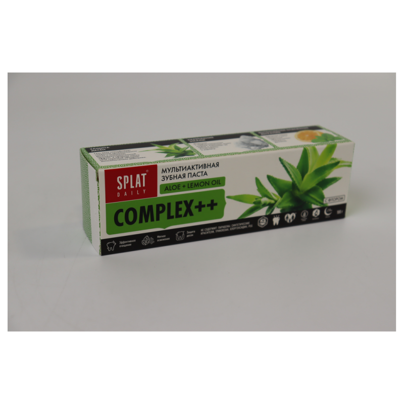 Зубная паста Splat Daily Complex++ - это идеальное решение для ежедневного ухода за зубами. Ее уникальная формула обеспечивает комплексный уход, защиту от кариеса и освежающее дыхание. Специальные активные ингредиенты помогают бороться с зубным налетом и предотвращают образование зубного камня. Эта зубная паста подходит для ежедневного использования и обеспечивает длительное ощущение свежести во рту. Вы можете использовать ее утром и вечером для максимального эффекта. Для улучшения результатов, рекомендуется использовать зубную щетку Splat Daily Complex++ вместе с этой пастой. Попробуйте эту зубную пасту с мятным вкусом и ощутите разницу уже после первого применения!