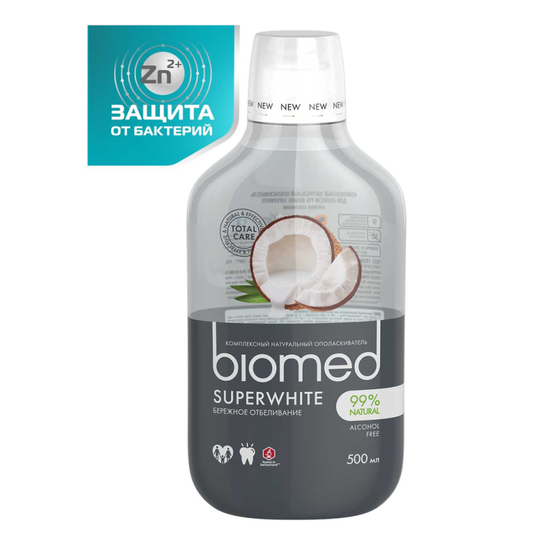 Ополаскиватель для полости рта Biomed Super White - это идеальное решение для белоснежной улыбки и здоровых десен. Специально разработанная формула помогает бороться с зубным налетом и предотвращает появление кариеса. Благодаря натуральным ингредиентам, таким как экстракт березы и мята, ваше дыхание будет свежим на протяжении всего дня. Просто добавьте небольшое количество ополаскивателя в стакан воды и используйте после чистки зубов. Попробуйте смешать с водой для полоскания горла при первых признаках простуды. Почувствуйте разницу с Biomed Super White уже сегодня!