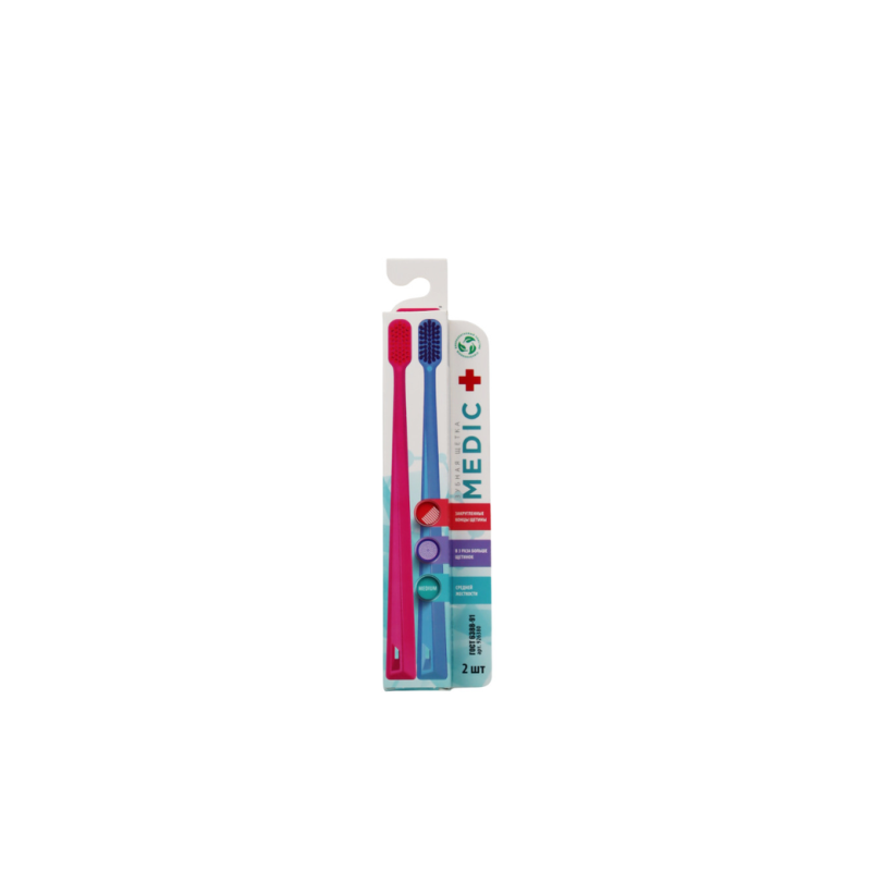Зубная щетка Medic - идеальный выбор для тех, кто ценит заботу о здоровье полости рта. Средняя жесткость щетинок обеспечивает эффективное очищение зубов и десен, не повреждая их. Удобная форма ручки обеспечивает комфортное использование. Цветовая гамма включает в себя голубой и розовый цвета, что делает щетки стильными и яркими аксессуарами в ванной комнате. Эти зубные щетки подойдут как для ежедневного использования, так и для путешествий. Просто возьмите их с собой в дорогу или используйте в качестве запасных щеток для гостей. Попробуйте использовать зубную щетку Medic вместе с любимой зубной пастой для максимального эффекта. Не упустите возможность улучшить свою утреннюю рутину и заботиться о своем улыбке с помощью этих качественных щеток.
