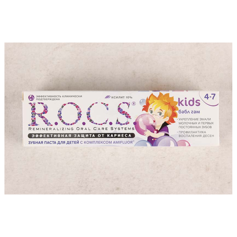 Зубная паста R. O. C. S. для детей «Бабл Гам» с объемом 45 г амм – это продукт, специально адаптированный для детей. Она разработана для бережного ухода за зубами и деснами малышей. Паста имеет приятный аромат и вкус «Бабл Гам,» что делает чистку зубов удовольствием для детей.