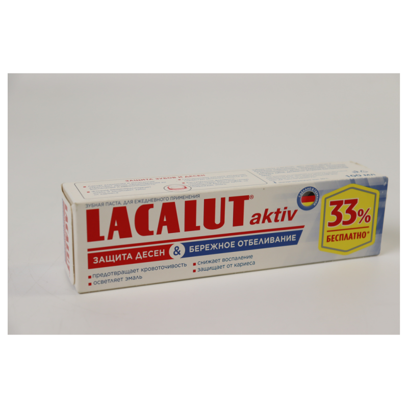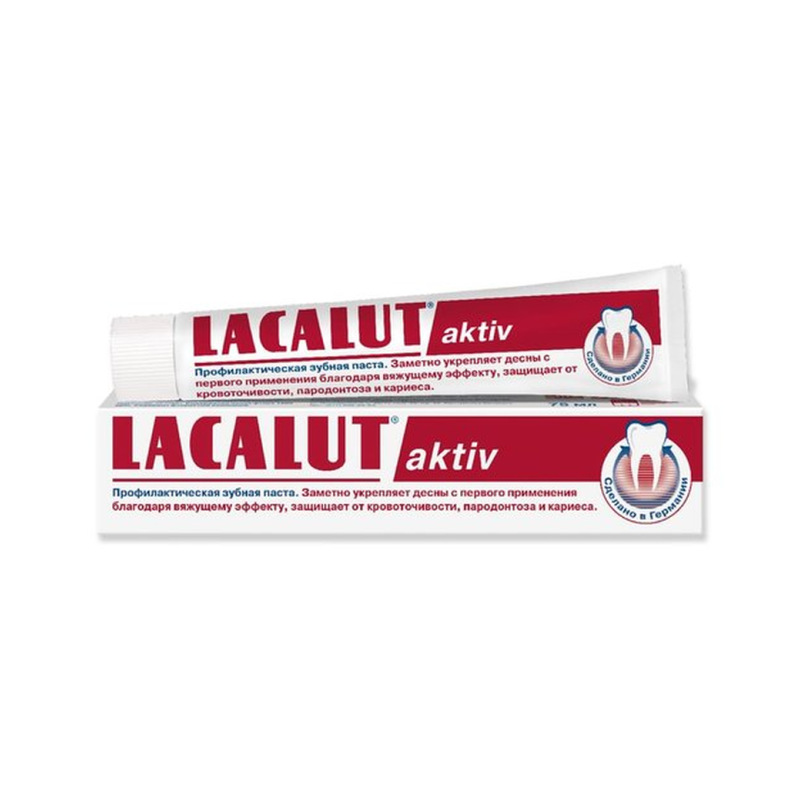 Зубная паста Lacalut Aktiv - идеальное решение для здоровья вашей улыбки! Эта уникальная формула обеспечивает защиту десен и укрепление эмали зубов. Специально разработанная для эффективного ухода за полостью рта, паста помогает бороться с зубным налетом, предотвращает кариес и освежает дыхание. Нанесите небольшое количество пасты на зубную щетку и тщательно чистите зубы в течение 2-3 минут. Используйте два раза в день для достижения наилучших результатов. Не упустите возможность улучшить здоровье вашего рта с зубной пастой Lacalut Aktiv!