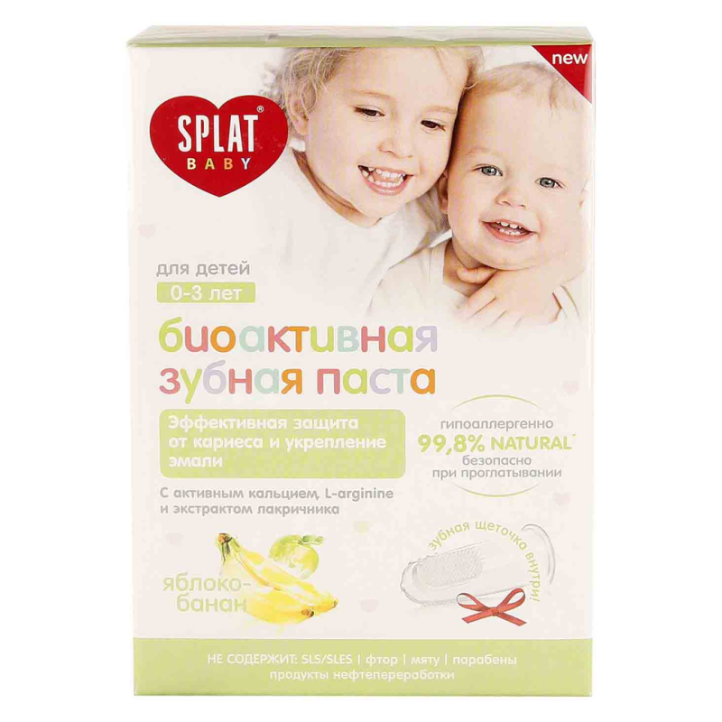 Зубная паста Splat для детей от до 3 л ет с вкусом «Яблоко и Банан» и объемом 40 миллилитров предназначена для бережного ухода за молочными зубами и деснами малышей. В ее составе д-пантенол и ксилитол для укрепления зубной эмали и защиты от кариеса. Вкусная паста делает чистку зубов приятной.