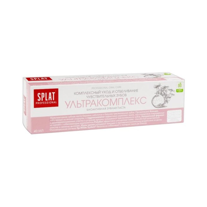 Паста зубная Splat Professional Ultra Complex - это идеальное решение для тех, кто ценит качество и заботится о здоровье своих зубов. Специально разработанная формула обеспечивает комплексный уход за полостью рта, защищая зубы от кариеса и зубного налета. Благодаря активным компонентам, паста эффективно борется с бактериями и освежает дыхание на длительное время. Эта паста зубная Splat Professional Ultra Complex подходит для ежедневного использования и подарит вам ощущение свежести и чистоты на весь день. Рекомендуется использовать два раза в день для достижения максимального эффекта. Попробуйте эту пасту зубную и почувствуйте разницу сами! Попробовать пасту зубную Splat Professional Ultra Complex и оценить ее эффективность.