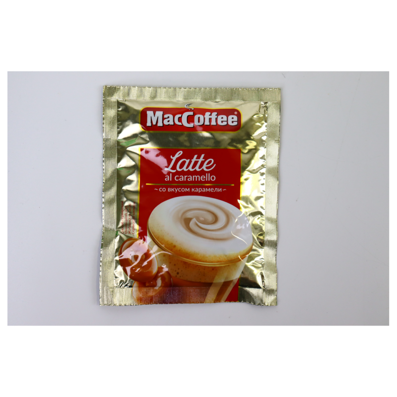 Maccoffee Латте СО Вкусом Карамели 3В1 – это настоящий кофейный напиток с вкусом карамели. Он состоит из молотого кофе, сахара и молочной пудры. Упаковка весит 20*20*22 г амм и содержит 20 штук.