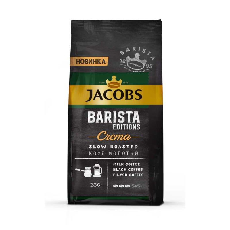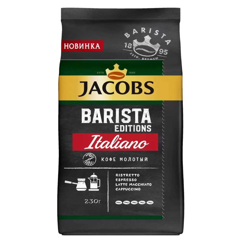 Кофе молотый Jacobs Barista - это высококачественный продукт из натуральных зерен кофе. Он имеет нежный аромат и приятный вкус с легким послевкусием. Состав кофе включает в себя арабику и робусту в соотношении 80/20.