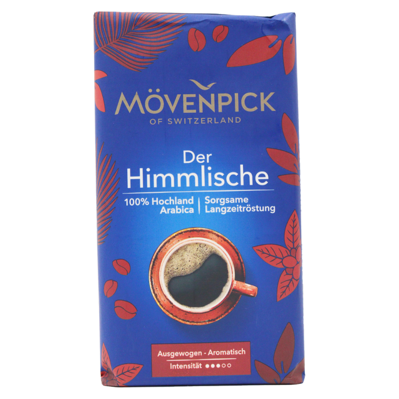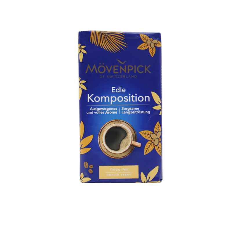Это молотое зерно кофе Mövenpick Caffe Crema из Швейцарии, имеющее нежный и приятный аромат. Состав кофе включает в себя арабику и робусту из Африки и Латинской Америки. Он имеет нежный и приятный вкус с нотками молочной шоколадной горчинки.