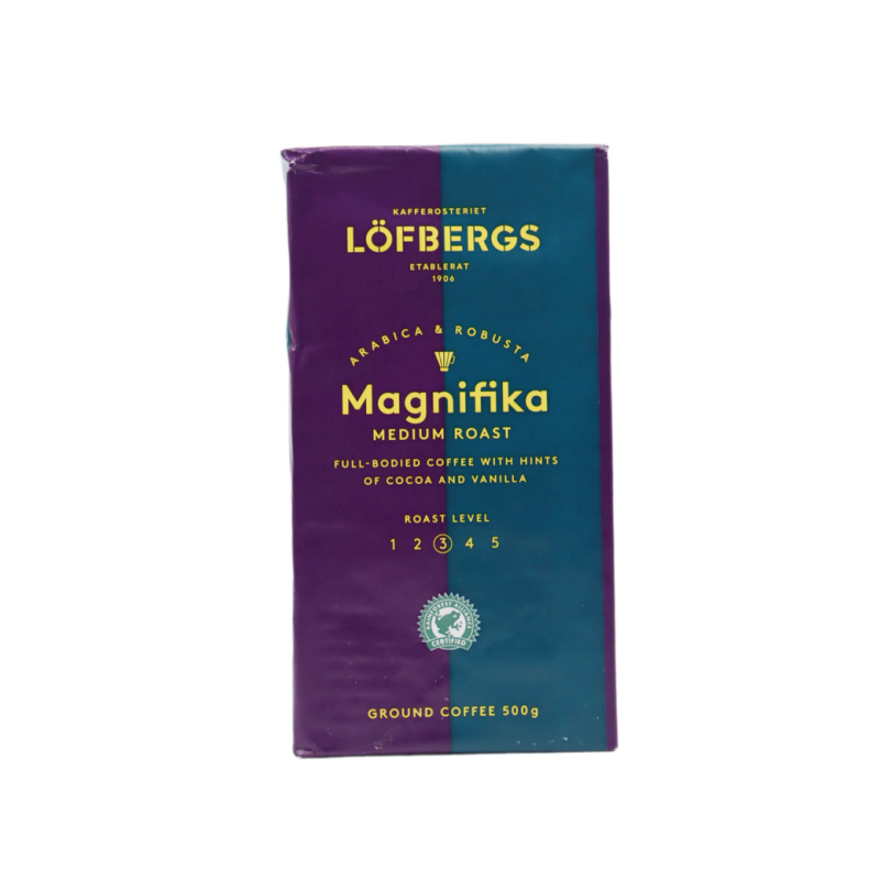 Кофе Lofbergs Magnifica – это мощный и ароматный напиток, приготовленный из высококачественных зерен кофе Арабики и Робусты. Он имеет нежный и приятный вкус с нотками молочной шоколадной горчинки. В состав входят кофеин, антоцианы и другие полезные вещества. Предлагаемый вам молотый кофе весит 500 г