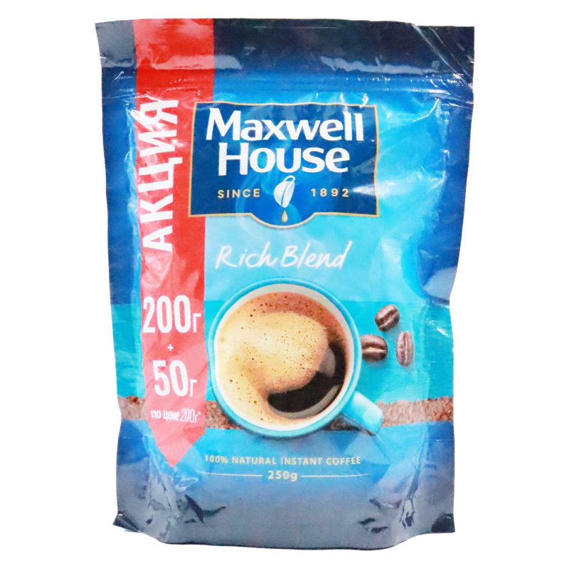 Кофе Jacobs Maxwell House растворимый в пакетиках по 200 г амм. Он состоит из ароматного и приятного вкуса арабики и робусты. Он имеет нежную и приятную ароматность, которая придаст Вашему дню приятный аромат.