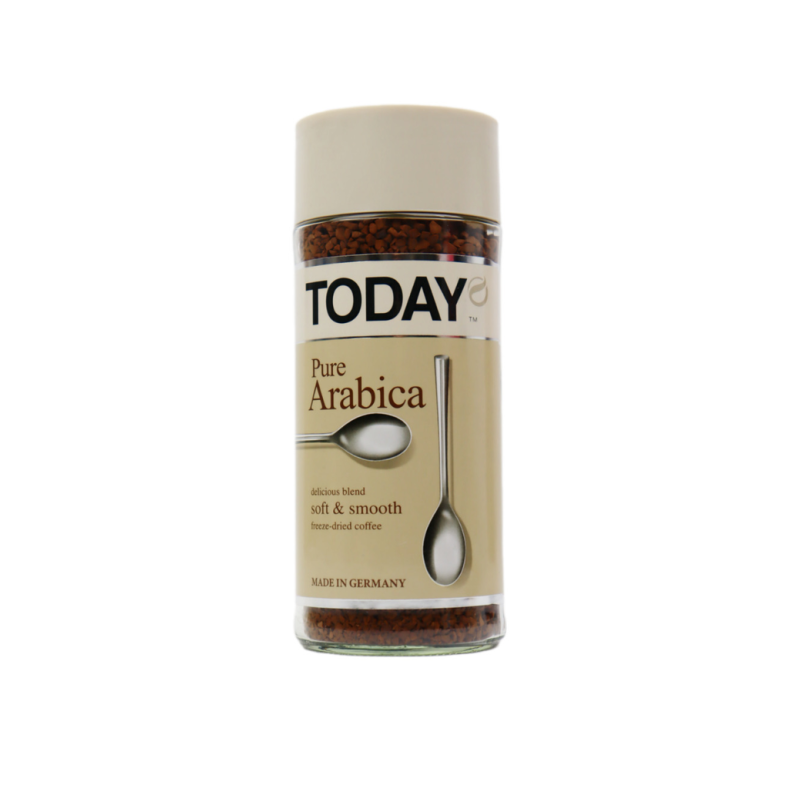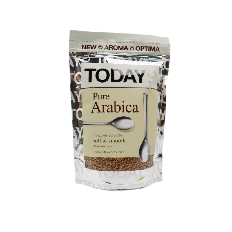 Кофе Today Arabica – это высококачественный растворимый кофе из Арабики. Он имеет нежный аромат и приятный вкус с легким послевкусием. Состав кофе Today Arabica: арабика, ароматизаторы, пищевые добавки.