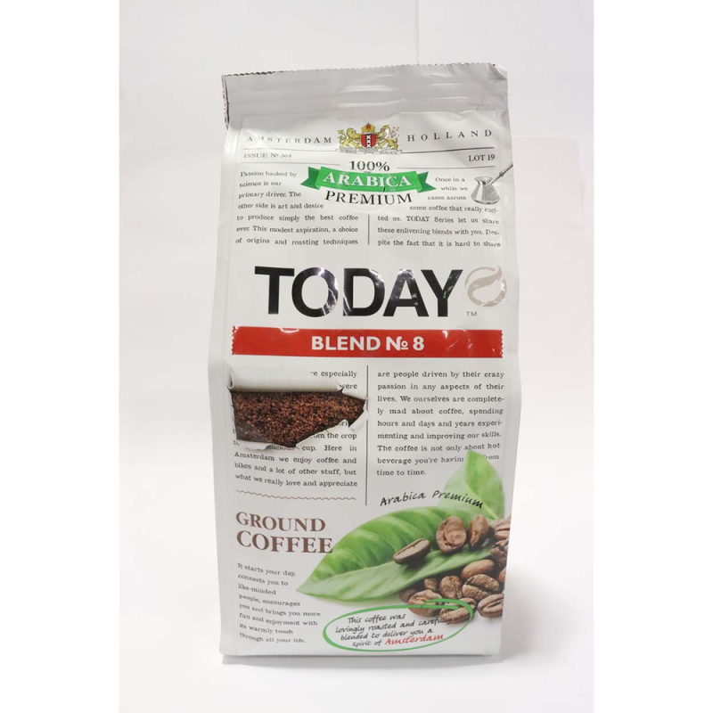 Кофе Today Blend №8 Раствор 200 г для приготовления кофе посредством паровой экстракции. Состав кофе включает в себя арабику и робусту из Африки и Латинской Америки. Он имеет нежный и приятный аромат с легкими нотами цитруса.