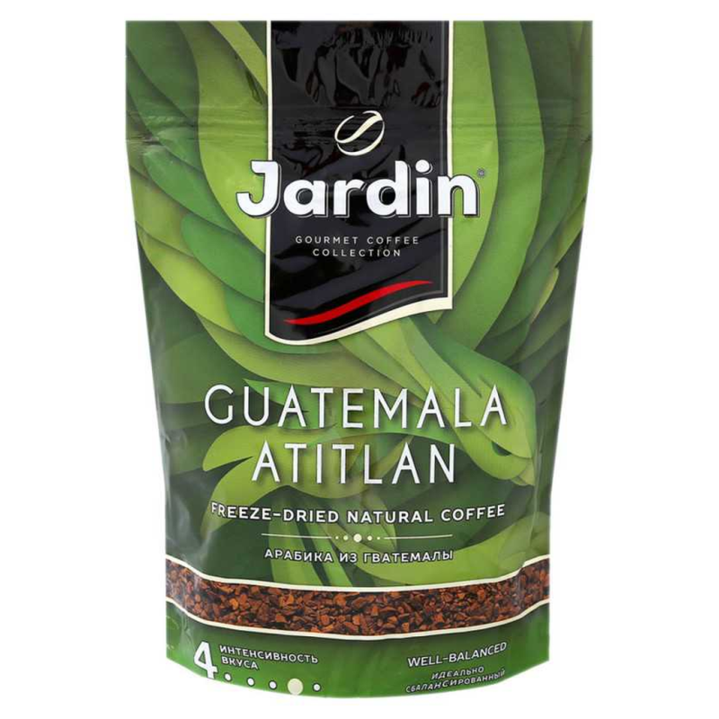 Кофе Jardin Guatemala Atitlan растворимый в пакетиках по 75 г Состоит из арабики Гватемалы и Кении. Обладает нежным ароматом и приятным вкусом с легкими нотками цитруса.