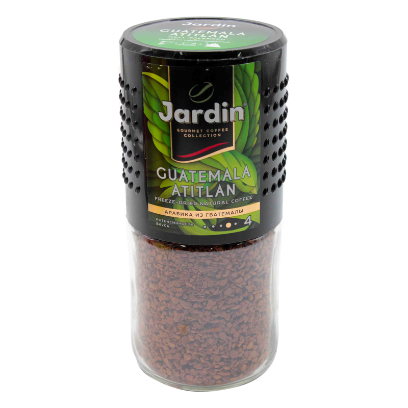 Кофе Jardin Guatemala Atitlan произведен из высококачественных арабики Гватемалы. Он имеет нежный аромат и приятный вкус с нотками миндаля и меда. Этот кофе имеет среднюю обжарку и представлен в упаковке по 95 г амм по 12 штук.