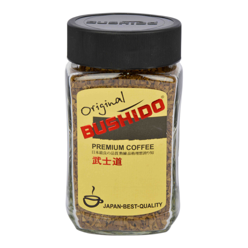 Кофе Bushido Original растворимый в пакетиках по 100 г амм. Состав кофе включает в себя арабику и робусту в соотношении 1:1. Он имеет приятный аромат и вкус с нежным послевкусием.